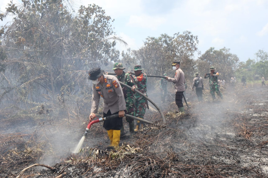 Sejumlah aparat TNI dan Polri serta tim gabungan lainya berjibaku untuk menuntaskan misi mereka, memadamkan kobaran api di lahan yang ditumbuhi semaka belukar tanpa mengenal lelah hingga titik penghabisan agar api dan bara yang tersisa padam. Mereka sepakat tak akan pulang sebelum kepulan asap dan api menghilang.