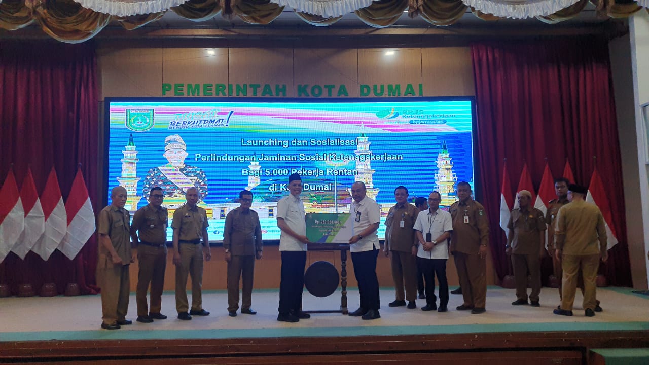 DUMAI (DUMAIPOSNEWS)- Guna mencegah masyarakat pekerja dan keluarganya jatuh menjadi keluarga miskin baru atau bahkan miskin ekstrem, Pemko Dumai bersama BPJS Ketenagakerjaan (BP Jamsostek) memberikan jaminan perlindungan sosial ketenagakerjaan.