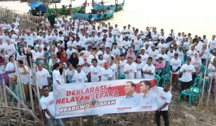 Dalam acara yang bertajuk Nelayan Jawa Tengah Dukung Prabowo – Gibran itu terlihat ratusan nelayan mengenakan kaos berwarna putih bertuliskan Wayahe Prabowo – Gibran, Bersama Indonesia Maju Menuju Indonesia Emas 2045.