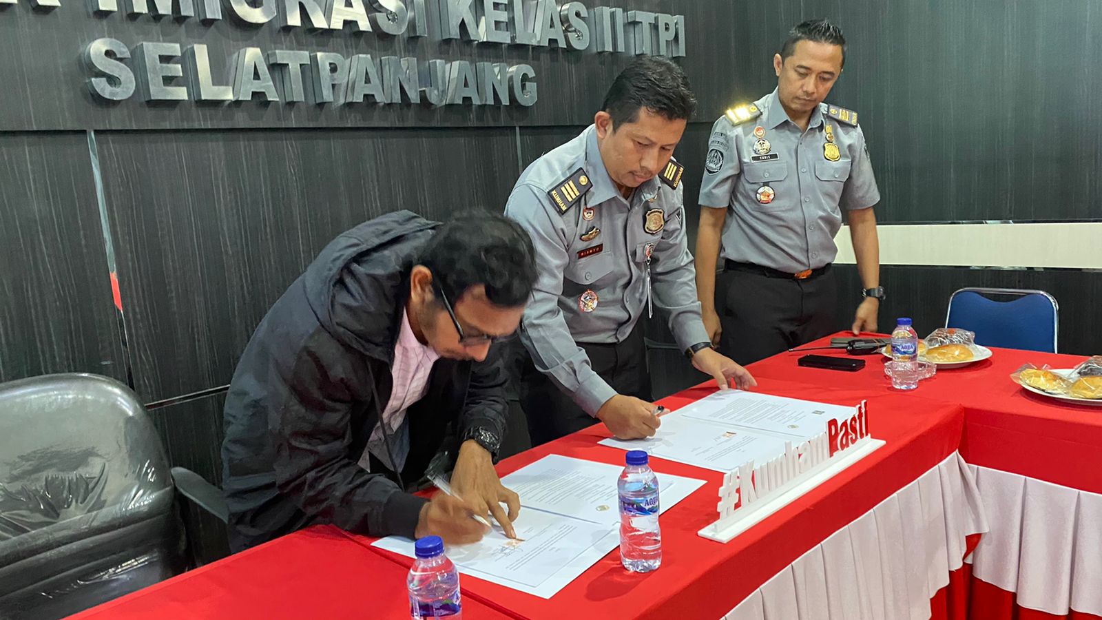 SELATPANJANG (DUMAIPOSNEWS) - Kantor Imigrasi Kelas II TPI Selatpanjang menandatangani Perjanjian Kerjasama (PKS) dengan Koperasi Pewarta Wibawa Investasi (PWI) bertempat di kantor Imigrasi Selatpanjang.