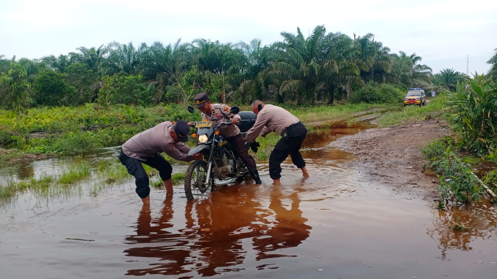 Tak hanya turun langsung untuk membantu dan mendampingi para personelnya untuk dapat tiba dilokasi pengamanan, Kapolsek Medang Kampai juga tampak membantu masyarakat pengguna jalan lainnya yang kendaraannya mengalami mati mesin usai terendam luapan air laut yang bercampur dengan air hujan terus turun diwilayah tersebut sejak beberapa waktu terakhir.