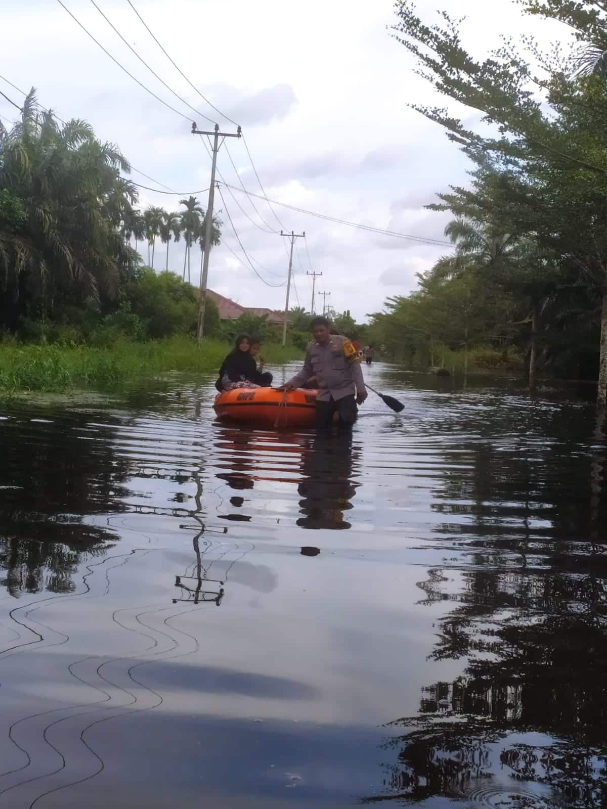Peduli masyarakat terdampak bencana banjir, Polres Dumai melalui Bhabinkamtibmas Kelurahan Bumi Ayu dengan sigap merespons situasi ini melalui aksi evakuasi bagi warga yang terjebak banjir, Kamis (28/12/2023).