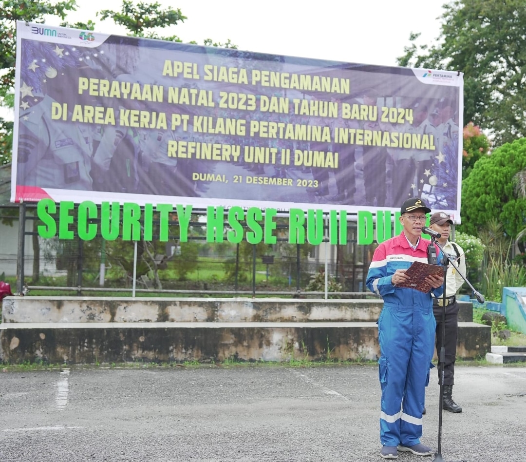 DUMAI (DUMAIPOSNEWS)– Dalam rangka memperkuat rencana pengamanan serta ketahanan energi jelang Perayaan Natal 2023 dan Tahun Baru 2024, PT Kilang Pertamina Internasional (PT KPI) Unit Dumai menyelenggarakan Apel Siaga Pengamanan, bertempat di Lapangan Kantor Kuning Pertamina pada Kamis (21/12).