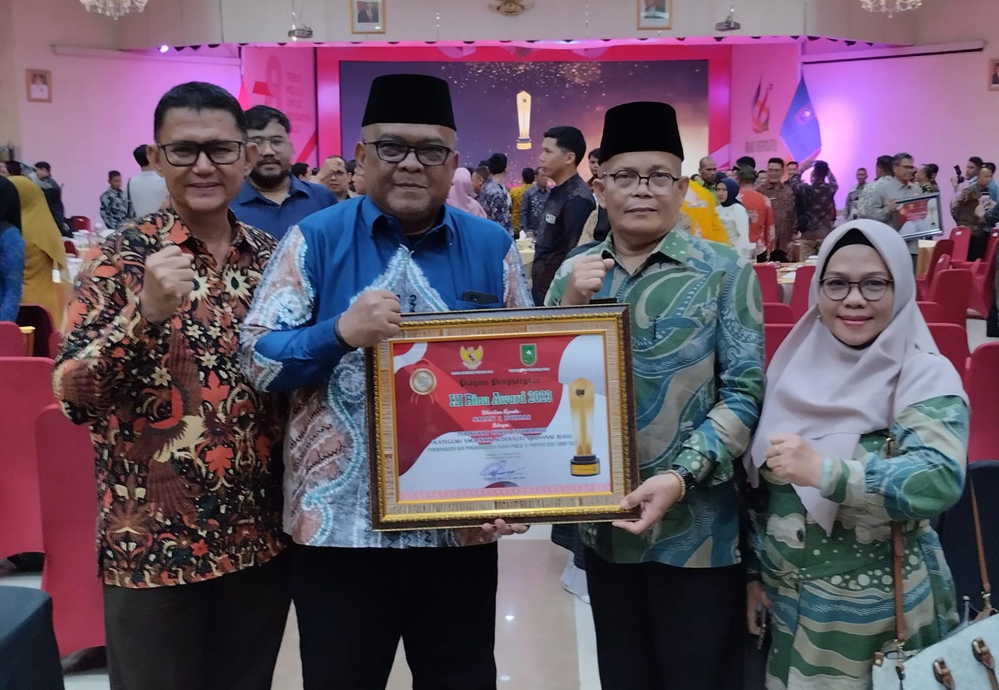 Penghargaan diserahkan pada Malam Puncak Anugerah Keterbukaan Informasi Publik, yang dilangsungkan di Balai Serindit Gedung Daerah Provinsi Riau, Kamis (21/12/2023) malam. Kegiatan yang ditaja Komisi Informasi (KI) Provinsi Riau itu mengusung tema besar “Keterbukaan Informasi Publik Menuju Pemilu Damai.