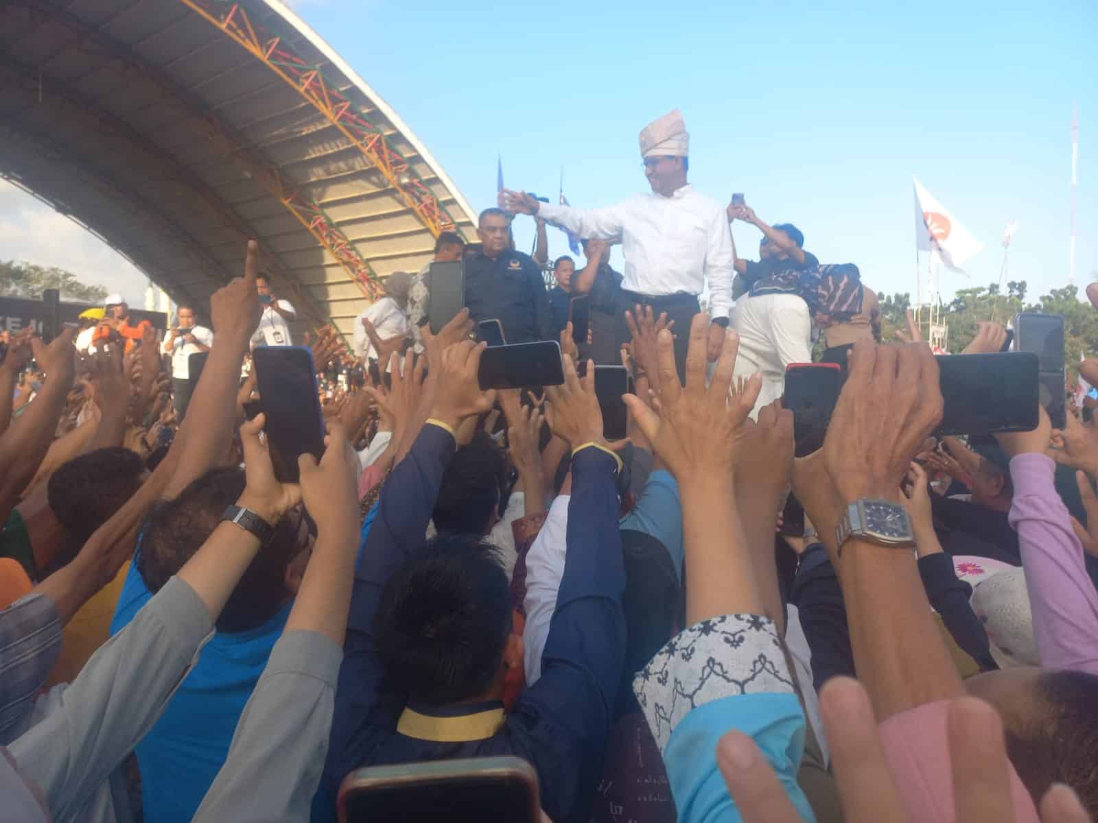 DUMAI (DUMAIPOSNEWS) - Calon Presiden Nomor Urut 1, H Anies Rasyid Baswedan, S.E., M.P.P., Ph.D hadir di Kota Dumai pada, Minggu (27/1/2024) di Taman Bukit Gelanggang.