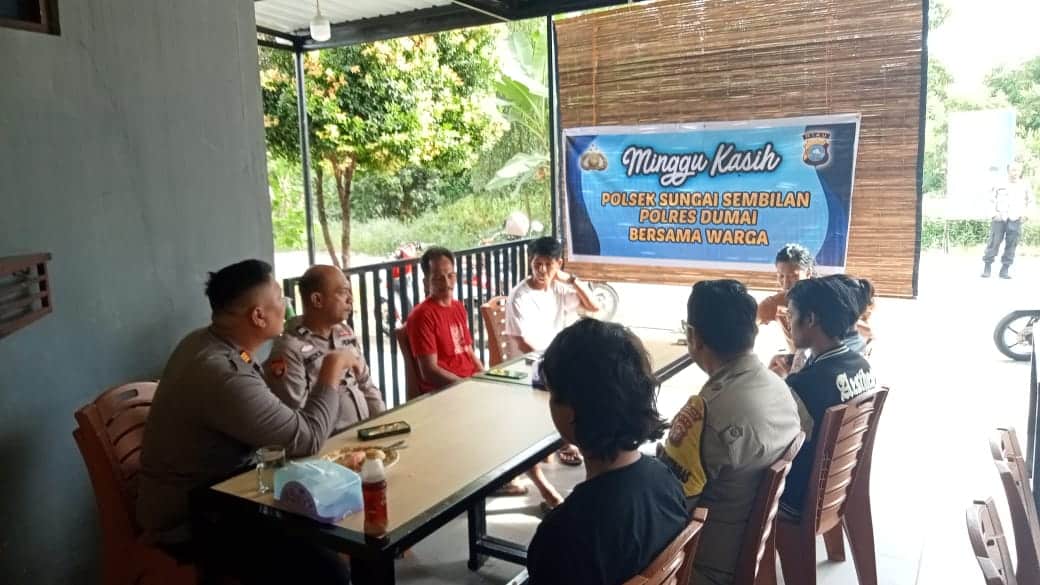 DUMAI (DUMAIPOSNEWS) - Laksanakan program Minggu Kasih, Kapolsek Sungai Sembilan menyambangi dan bertatap muka bersama warga diwilayah hukumnya dalam rangka untuk mempererat silaturahmi dan meningkatkan sinergitas Polri dengan masyarakat, Minggu (28/1/2024). Kegiatan ini juga menjadi bagian dari upaya Cooling System menjelang pelaksanaan Pemilihan Umum 2024.