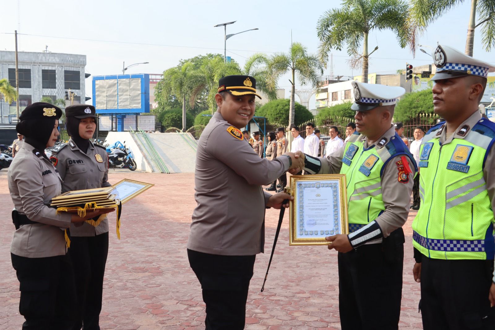 Usai pelaksanaan apel pagi jam pimpinan, Kapolres Dumai menyerahkan penghargaan kepada personel yang berprestasi dilingkungan Polres Dumai dalam rangka pembangunan zona integritas menuju predikat WBK dan WBBM Tahun 2024.(rio)