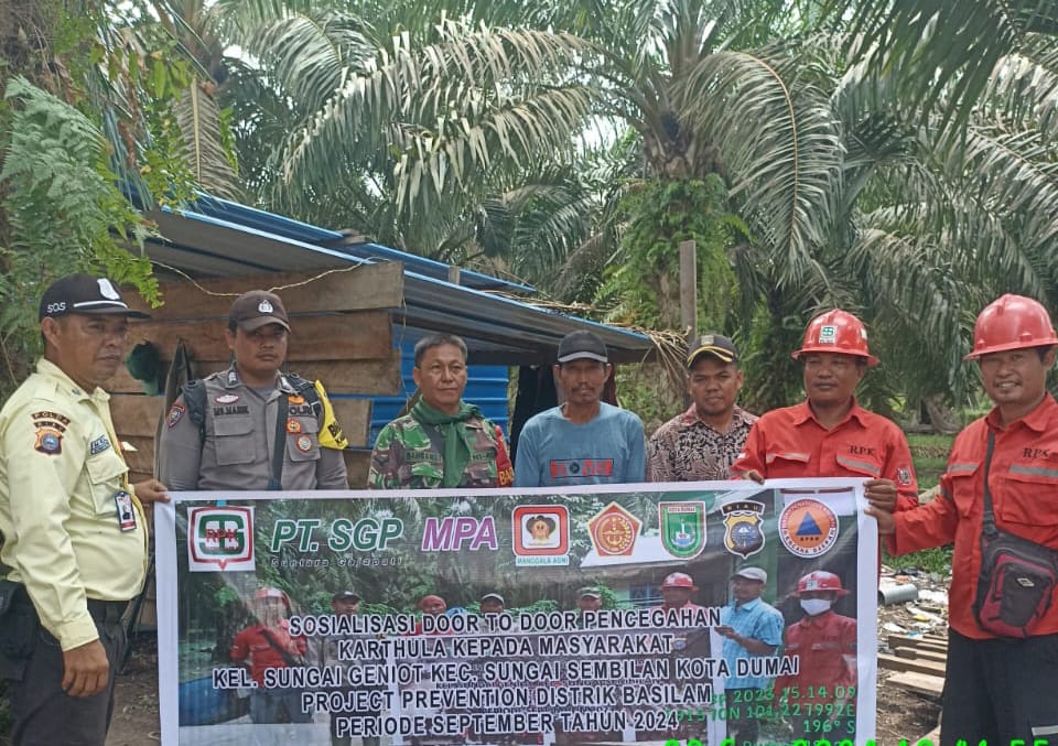 DUMAI(DUMAIPOSNEWS)-.Dalam upaya meminimalisasi pemanasan global dan meningkatkan pemahaman masyarakat supaya tidak melakukan pembukaan lahan dengan cara dibakar, untuk itu PT Suntara Gaja Patih (SGP) bersama Babinsa, Bhabinkamtibmas dan Masyarakat Peduli Api(MPA) melakukan sosialisasi dengan sistem door to door.