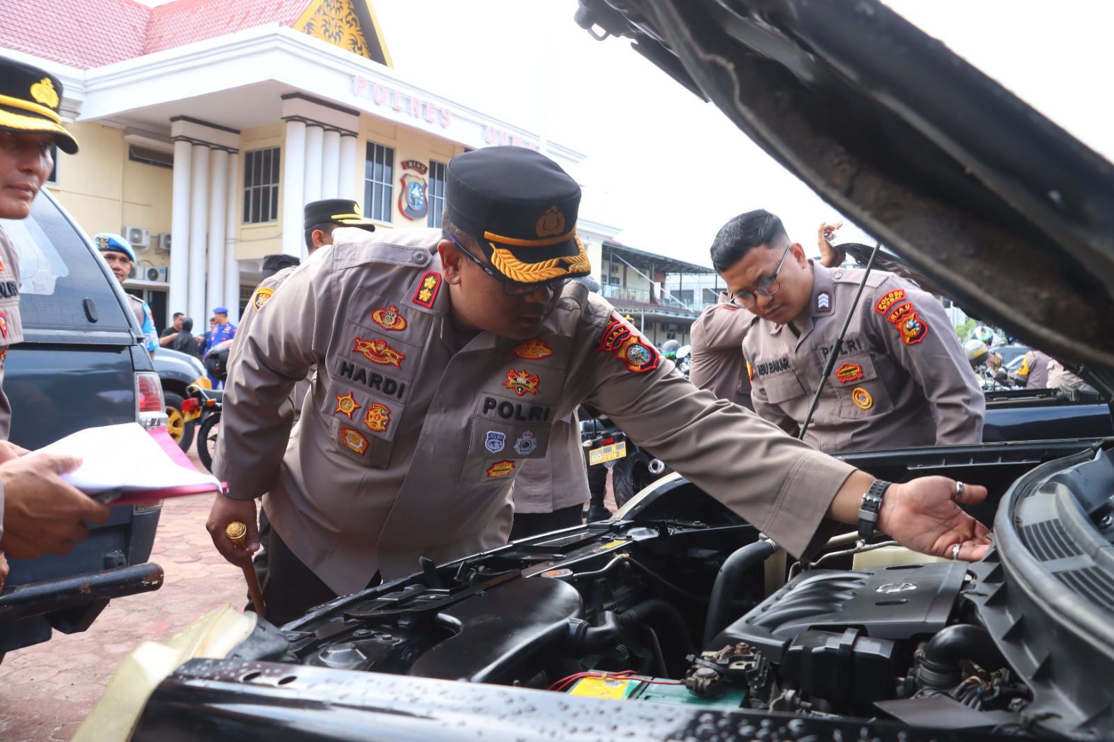Kapolres Dumai menegaskan pentingnya pengecekan kendaraan dinas untuk memastikan kesiapan operasional setiap kendaraan.