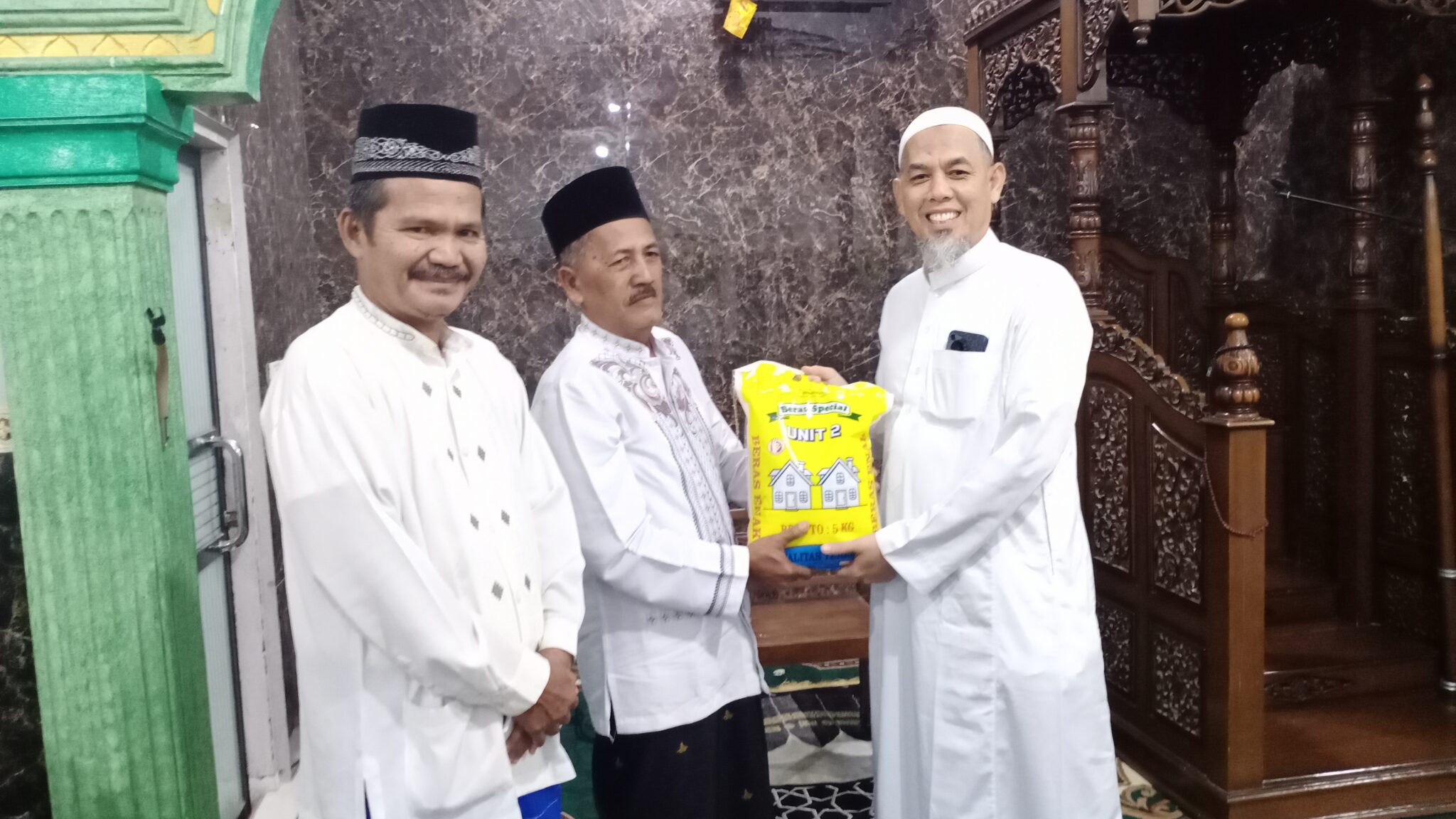 Kemudian dilanjutkan dengan penyerahan bantuan sebanyak beras bagi kaum dhuafa dan pemberian bantuan ke Masjid Nurul Hidayah.