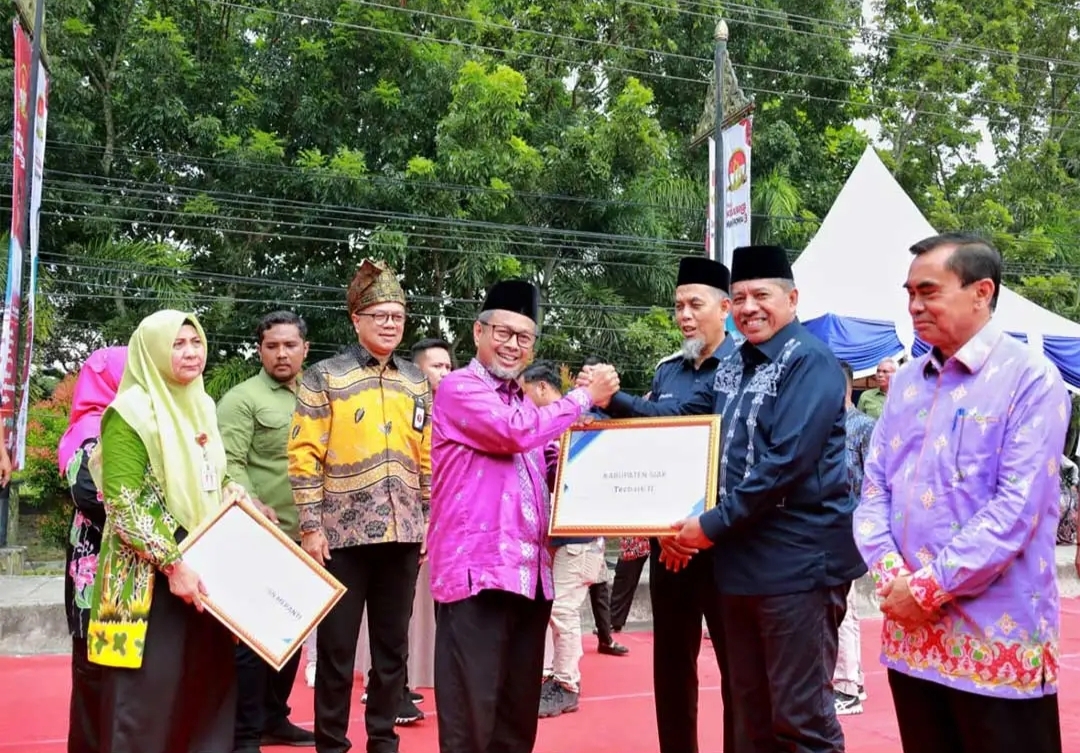 Pada kesempatan itu, Bupati Siak Drs H Alfedri MSi menerima penghargaan dari Pemerintah Provinsi Riau melalui Gubernur Riau yang disampaikan oleh Asisten Pemerintahan dan Kesejahteraan Rakyat Setdaprov Riau Drs H Masrul Kasmy MSi.