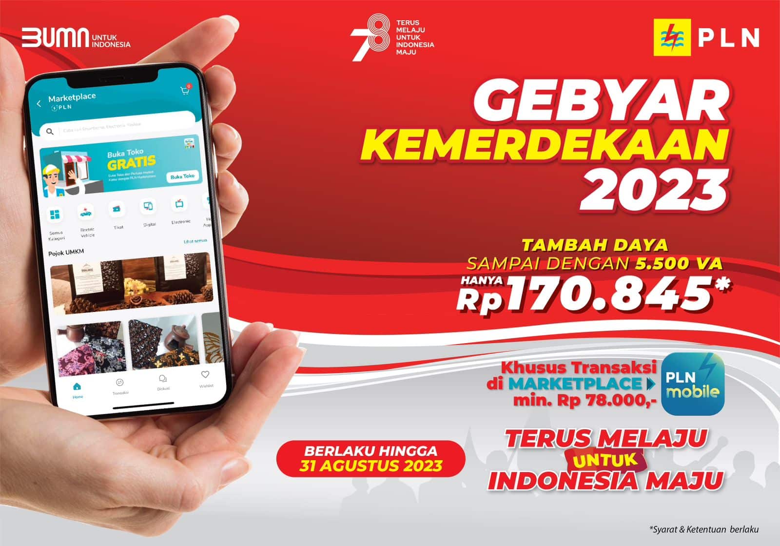 Darmawan menambahkan, untuk dapat mengikuti promo “Nyalakan Kemerdekaan 2023”, pelanggan dapat melakukan transaksi di _marketplace_ PLN Mobile dengan minimal transaksi sebesar Rp78 ribu. Pelanggan akan mendapatkan harga spesial untuk tambah daya hingga 5.500 VA hanya dengan biaya Rp170.845.