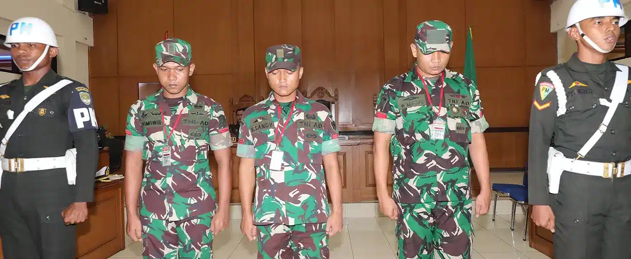 Oleh oditur militer yang menangani perkara tersebut, Praka Riswandi Manik (RM), Praka Heri Sandi (HS), dan Praka Jasmowir (J) didakwa melanggar pasal berlapis. Para terdakwa telah melanggar Pasal 340 KUHP juncto Pasal 55 ayat (1) ke-1 KUHP, Pasal 338 KUHP juncto pasal 55 ayat (1) ke-1 KUHP, Pasal 351 ayat (3) KUHP juncto Pasal 55 ayat (1) ke-1 KUHP, dan Pasal 328 KUHP juncto Pasal 55 ayat (1) ke-1 KUHP.
