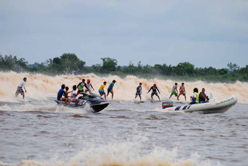 Pada awalnya, gelombang bono ditemukan oleh dua orang bore-rider (peselancar) asal Brasil dan Perancis, kini gelombang bono yang dulu ditakutkan akibat suaranya yang menggelegar oleh masyarakat sekitar dijadikan ajang adu jago para peselancar lokal dan internasional. Kegiatan menaklukkan gelombang raksasa ini terangkum dalam Festival Bekudo Bono. Ada dua kategori yang dipertandingkan, lokal dan profesional.