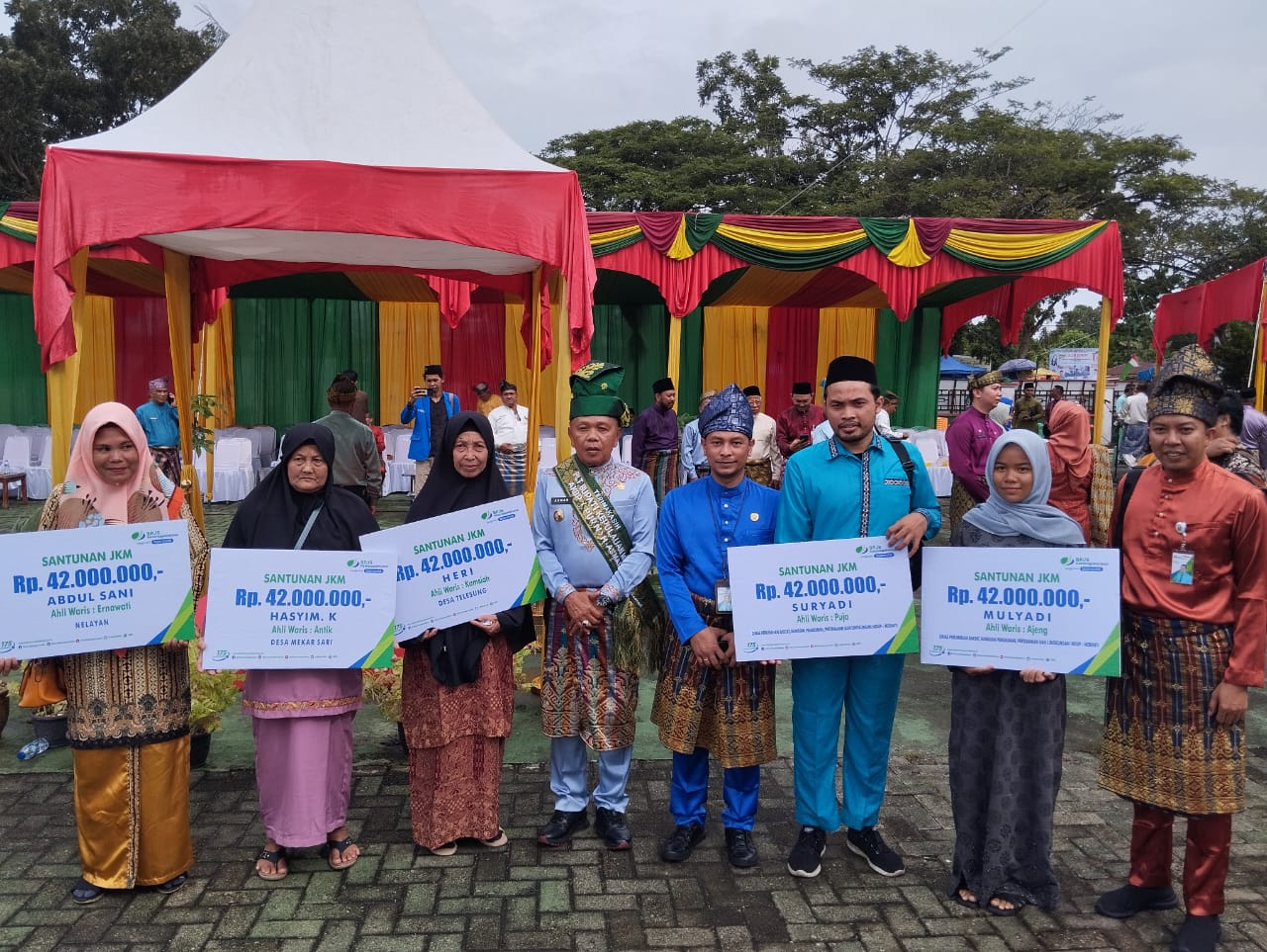 Saat itu ada lima ahli waris yang mendapatkan santunan yakni Kamsiah ahli waris dari Heri, salah seorang perangkat Desa Telesung mendapat santunan jaminan kematian sebesar Rp42 juta, Ajeng ahli waris dari Mulyadi honorer Dinas Perumahan Rakyat Kawasan Pemukiman Pertanian dan Lingkungan Hidup Meranti, Ajeng mendapat santunan jaminan kematian sebesar Rp42 juta.