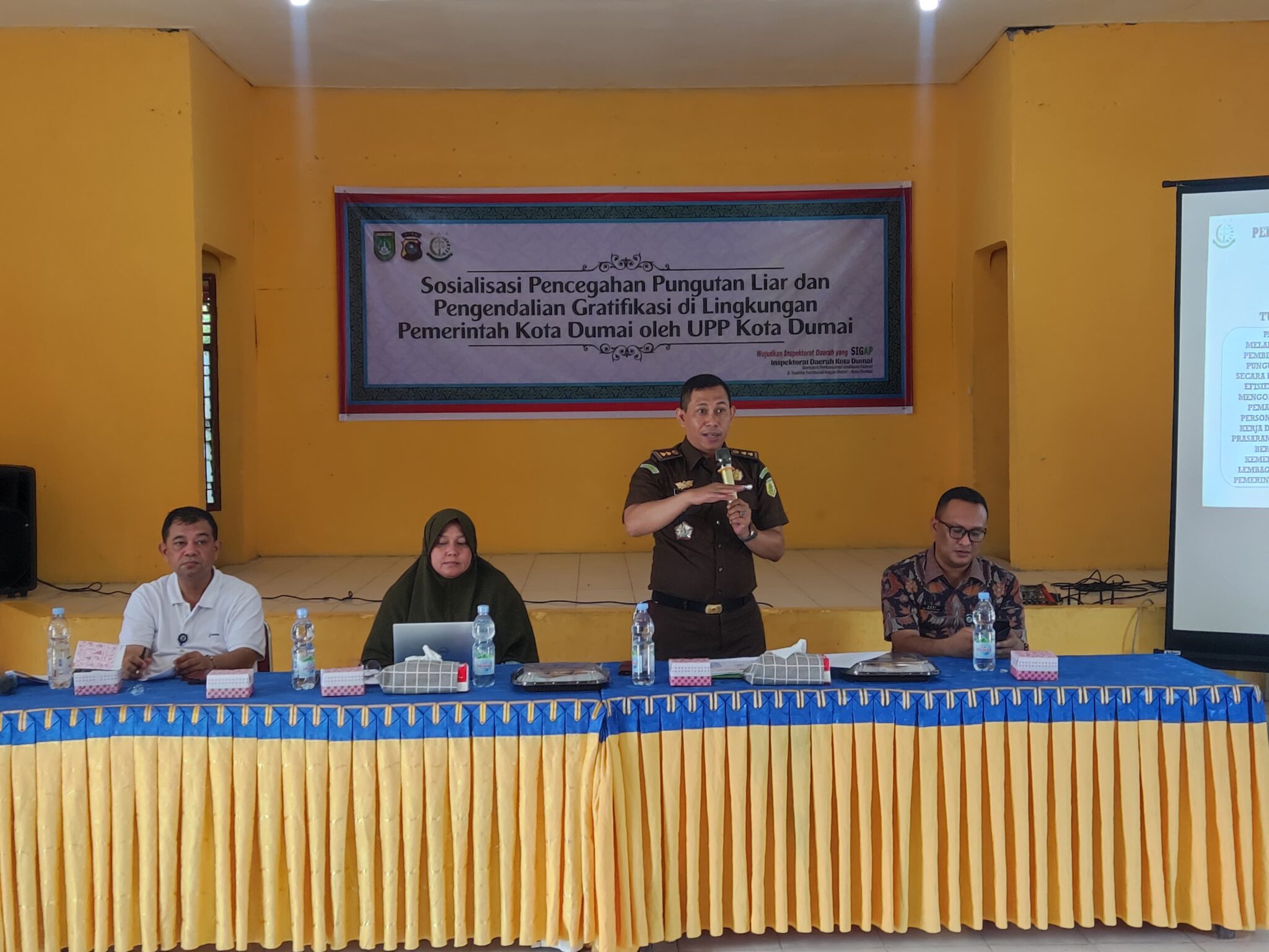 Sosialisasi tersebut di inisiasi oleh Inspektorat Kota Dumai dengan menggandeng Kejaksaan Negeri Dumai dan Polres Dumai sebagai narasumber.