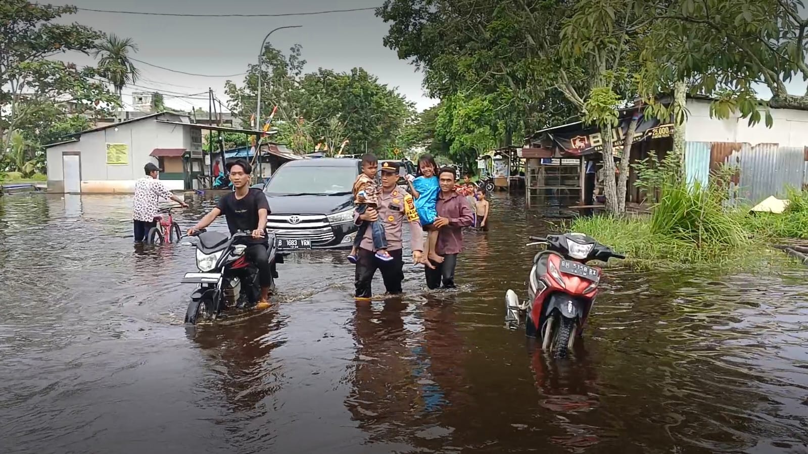 Hal tersebut dilakukan Kapolsek Dumai Barat, karena dirinya hendak membantu masyarakat yang kesulitan melintasi ruas jalan yang terendam banjir.