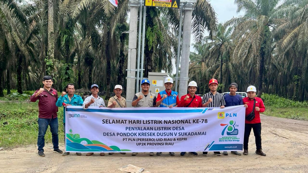General Manager PT PLN (Persero) Unit Induk Distribusi Riau & Kepulauan Riau (UIDRKR) Agung Murdifi mengatakan, PLN telah merampungkan pembangunan Jaringan Tegangan Menengah (JTM) sepanjang 14,41 kilometer sirkit (kms), Jaringan Tegangan Rendah (JTR) sepanjang 4,72 kms dan trafo gardu distribusi sebanyak 4 unit dengan kapasitas total 400 kilo Volt Ampere (kVA) di Dusun Suka Damai.