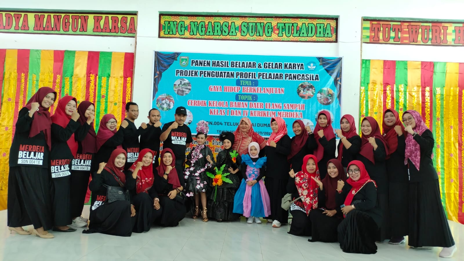 SDN 004 Teluk Binjai menggelar kegiatan ‘Panen Hasil Belajar dan Gelar Karya Projek Penguatan Profil Pelajar Pancasila’ dengan tema gaya hidup berkelanjutan dalam topik ‘cerdik kelola bahan daur ulang sampah kelas I dan IV Kurikulum Merdeka’.