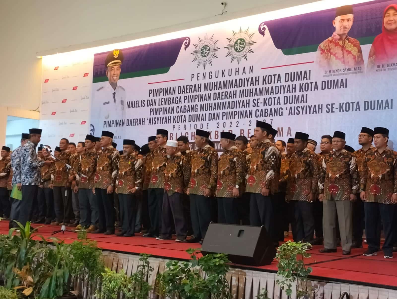 DUMAI (DUMAIPOSNEWS) - Pengurus Pimpinan Daerah Muhammadiyah (PDM) dan Pengurus Pimpinan Daerah Aisyiyah (PDA) Kota Dumai periode 2022-2027 resmi dikukuhkan Ahad 12/6/2023) di Ballroom Hotel Grand Zuri Dumai.