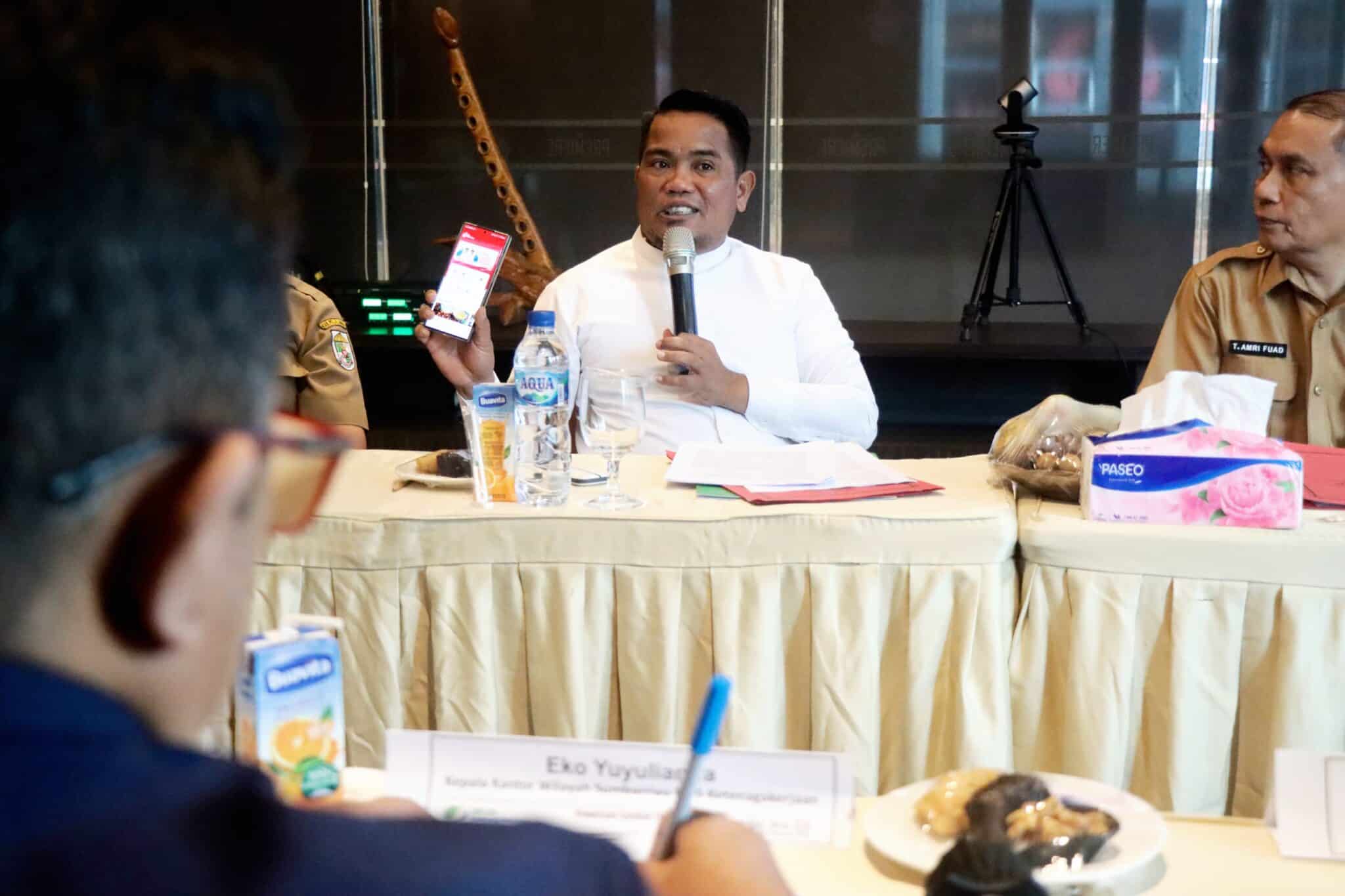 PELALAWAN (DUMAIPOSNEWS.COM) — Bupati Pelalawan H Zukri mengikuti kegiatan wawancara Paritrana Award tingkat Provinsi Riau dengan nominasi penghargaan Jaminan Sosial Ketenagakerjaan kategori nominasi pemerintah kabupaten/kota, pada Selasa (27/2), bertempat Hotel Premiere Pekanbaru.
