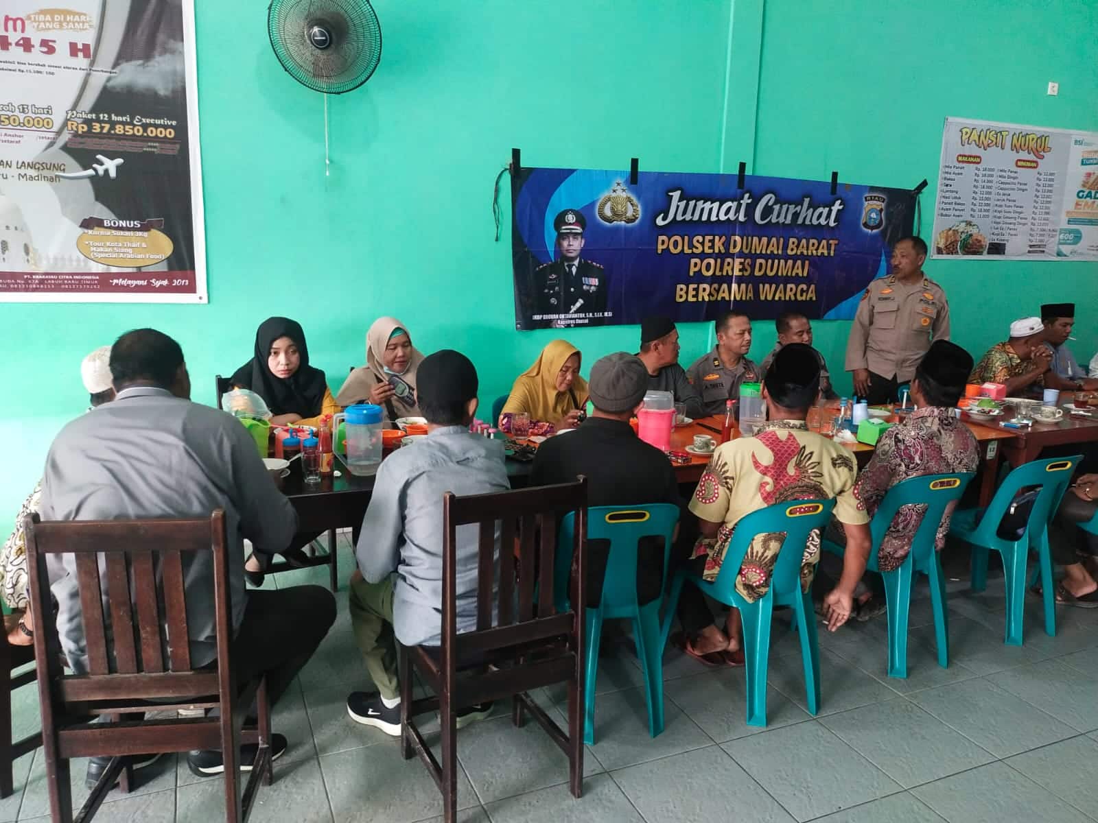 Kapolsek Dumai Barat Kompol Syahrizal, S.E, M.H, M.Si diwakili oleh Wakapolsek Dumai Barat AKP Ronny Juainie mengatakan, program Jum’at Curhat merupakan salah satu upaya Polri untuk mempererat silaturahmi dengan masyarakat, melaksanakan sosilasiasi serta diskusi untuk mengetahui situasi masyarakat dan merespon persoalan-persoalan yang ada ditengah masyarakat.