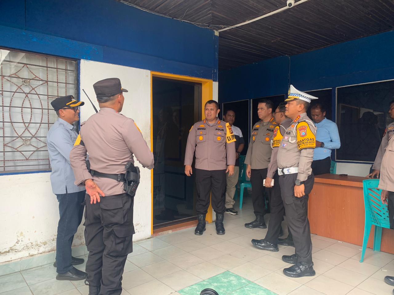 DUMAI (DUMAIPOSNEWS) – Kapolres Dumai AKBP Dhovan Oktavianton, S.H, S.I.K, M.Si bersama Dir Intelkam Polda Riau Kombes Pol Efrizal, S.I.K. M.M, Dir Lantas Polda Riau Kombes Pol Taufiq Lukman Nurhidayat, S.I.K, M.I.K dan Wadir Lantas Polda Riau AKBP Nurhadi Ismanto, S.H, S.I.K selaku Tim Pamatwil Polda Riau melakukan pemantauan dan pengecekan Rekapitulasi Hasil Pemungutan Suara Pemilu 2024 tingkat Kecamatan di Kota Dumai, Sabtu (18/2/2024).