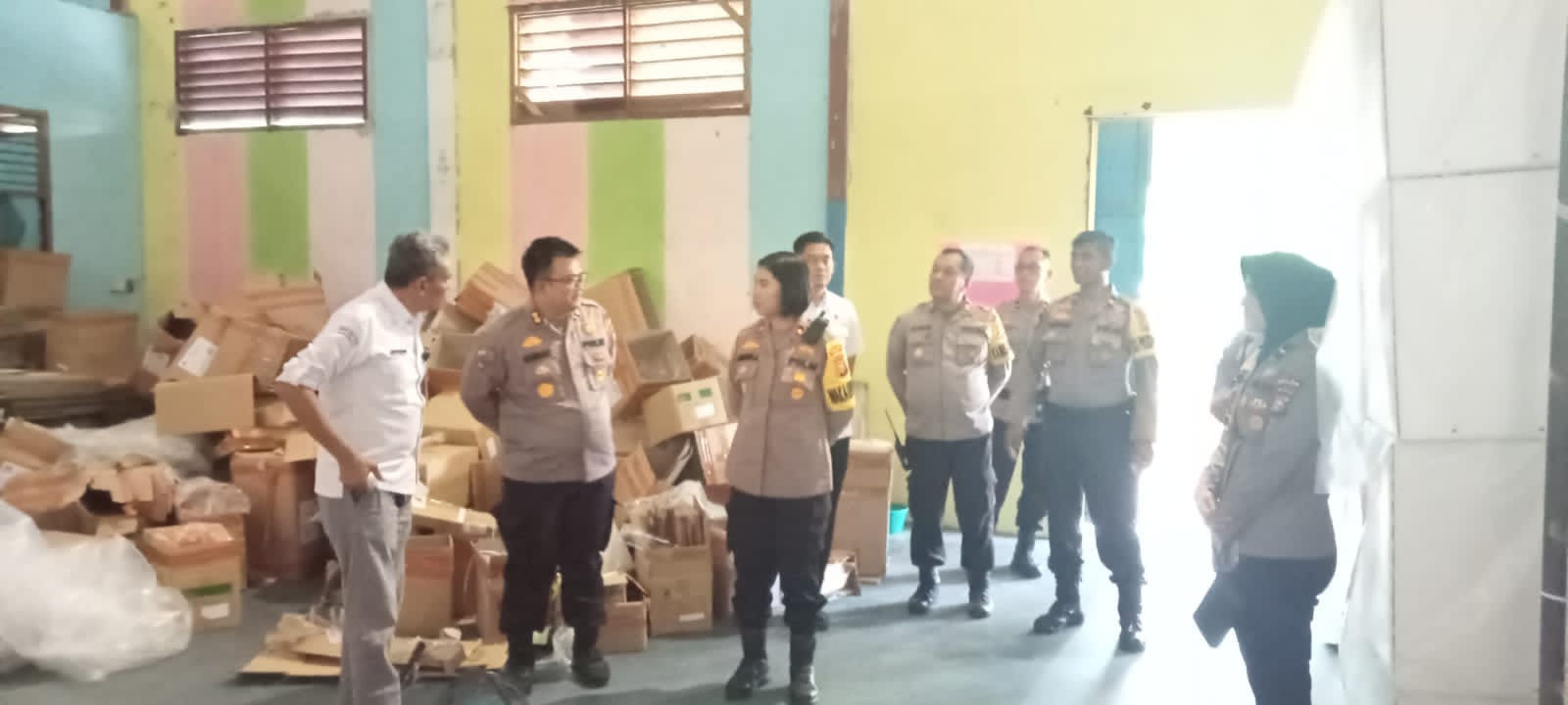 Jelang proses pemungutan dsn penghitungan susara Pemilu 2024, untuk memantau perkembangan situasi Kamtibmas serta pengamanan dilakukan sesuai dengan Standar Operasional Prosedur (SOP), Tim Was Ops menginspeksi Gudang Logistik KPU Kota Dumai di Jalan Abdul Rabkhan KM 5 Kelurahan Bukit Timah Kecamatan Dumai Selatan.