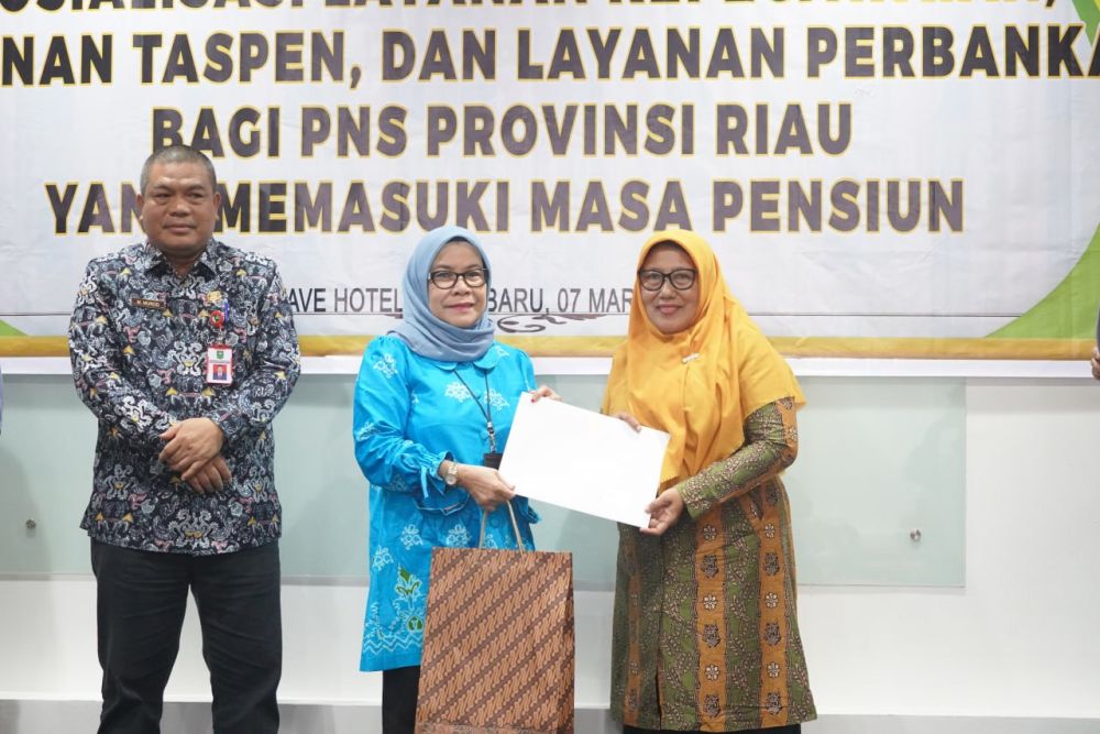 PEKANBARU, DUMAIPOSNEWS,COM - Terhitung Mulai Tanggal (TMT) 1 Mei 2024, sebanyak 38 Pegawai Negeri Sipil di lingkungan Pemerintah Provinsi (Pemprov) Riau menerima SK Pensiun. SK Pensiun itu diserahkan oleh Pj Gubernur Riau SF Hariyanto yang diwakili oleh Asisten III Sekretariat Daerah Provinsi (Setdaprov) Riau, Elly Wardani, di Fave Hotel Pekanbaru, Kamis (7/3/2024).