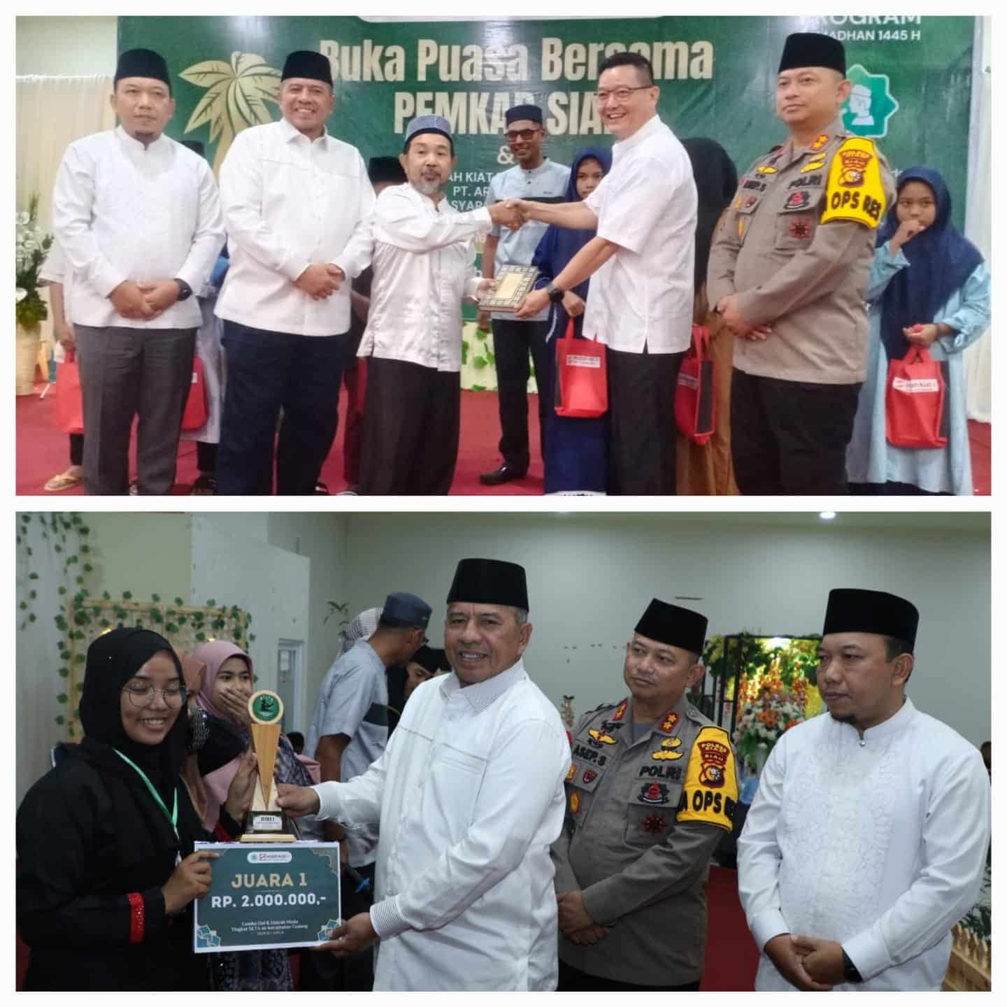SIAK (DUMAIPOSNEWS.COM) - Bupati Siak, Drs. H. Alfedri MSi bersama wakil Bupati, H Husni Merza serta Kapolres Siak, AKBP Asep Sujarwadi SIK MIK hadiri Program ramadhan 1445 hijriah PT. indah kiat pulp dan paper tbk dan PT. Arara Abadi bersama masyarakat dan organisasi kemasyarakatan pemuda (OKP) kecamatan tualang, dengan bertemakan ‘Mengapai berkah ramadhan dengan menyebarkan cahaya ilmu dan kebaikan’, di aula bunut PT. IKPP, sabtu (30/3).