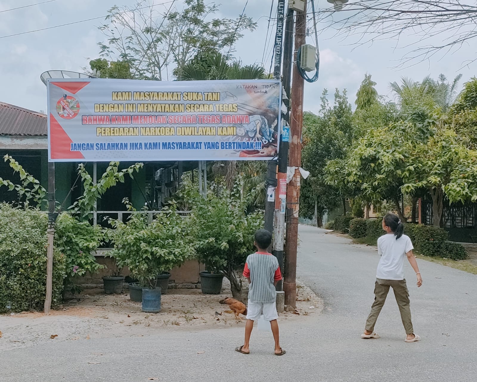 ” Ini bentuk penolakan dan protes warga terhadap maraknya peredaran narkoba disukatani yang kian merajalela,” ungkap para ketua RT 01,RT 02 dan RT 03, Misdi, Anhar dan Rijal serta warga pada Senin (4/3).