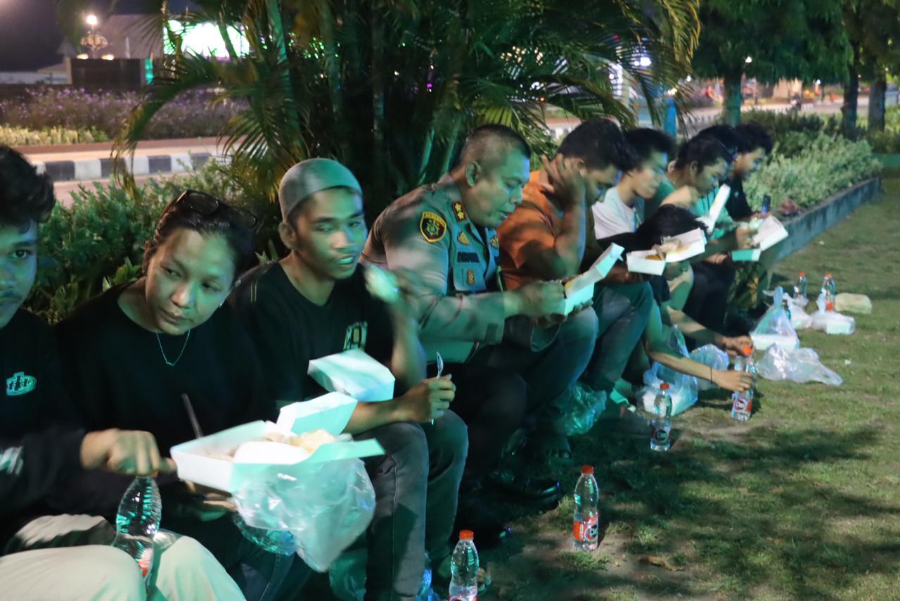 DUMAI (DUMAIPOSNEWS) - Dalam rangka Operasi Tertib Ramadhan Lancang Kuning 2024 Polres Dumai dan sebagai wujud kepedulian kepada sesama, Kapolres Dumai menggelar Sahur On The Road dan makan sahur dipinggir jalan bersama masyarakat Kota Dumai khususnya para pengguna jalan yang melintas di depan Pos Pengamanan Operasi Tertib Ramadhan 2024 Polres Dumai, Jumat (22/3/2024).