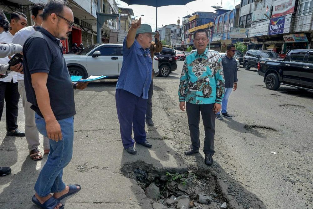 PEKANBARU, DUMAIPOSNEWS.COM - Penjabat (Pj) Gubernur Riau SF Hariyanto tinjau sejumlah ruas jalan rusak di Pekanbaru. Mulai dari Ahmad Yani, Juanda, Parit Indah dan Taman Karya, termasuk simpang Garuda Sakt.