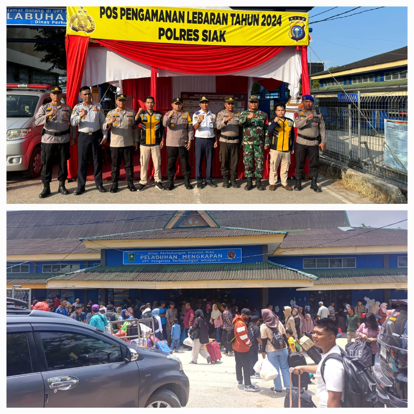 SIAK (DUMAIPOSNEWS.COM) - Pihak petugas dan keamanan di Pelabuhan Mengkapan Buton Kecamatan Minas Kabupaten Siak-Riau, bertekad dan terus berupaya untuk memberikan pelayanan maksimal kepada masyarakat pemudik. Selain mendirikan posko bersama di areal pintu masuk Pelabuhan, juga diingatkan kepada pemudik untuk membeli tiket jauh hari.