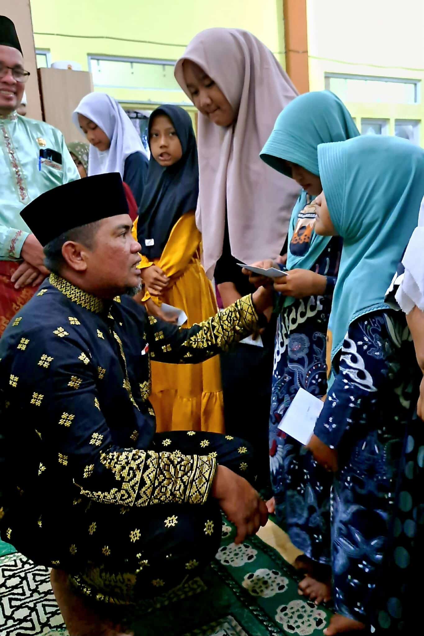 ” Jadi untuk 14 kelurahan ada sekitar 1.896 orang dan kalau 104 desa ada sekitar 3.433 orang anak yatim. Kalau untuk anak yatim yang terdapat kelurahan, kita menghabiskan biaya sekitar kurang lebih Rp 6,1 Milyar dan untuk di desa kita menghabiskan biaya kurang lebih Rp 9,8 Milyar, “ujarnya.