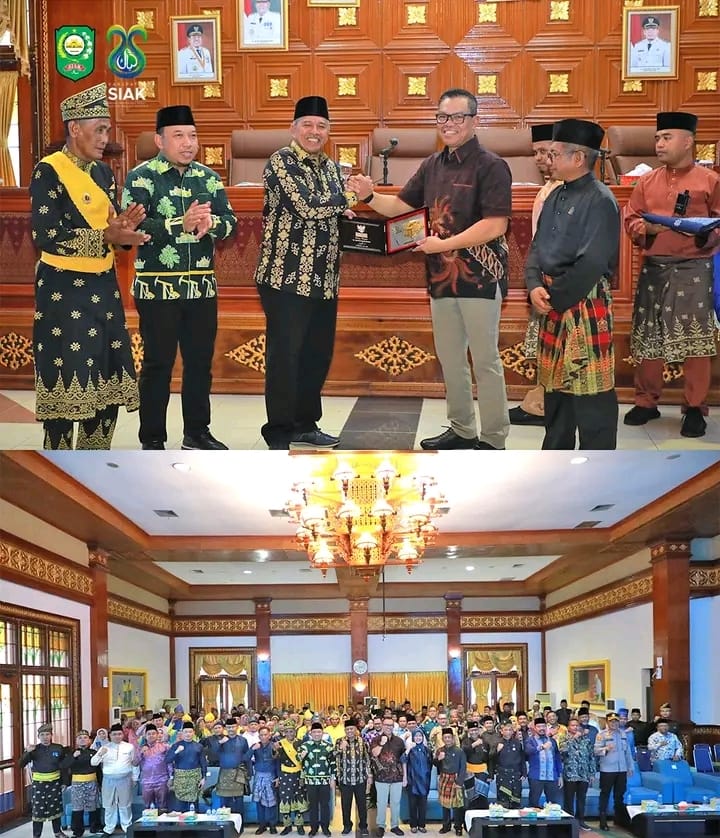 Bupati Siak Alfedri dalam sambutannya mengucapkan selamat datang kembali kepada Pj Bupati Batubara beserta istri dan rombongan yang juga berkesempatan hadir pada penabalan di LAMR Kabupaten Siak