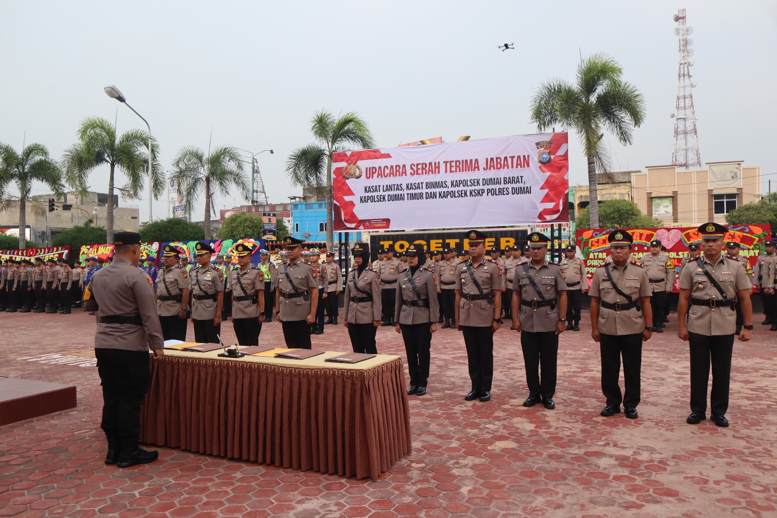 Berdasarkan Surat Telegram Kapolda Riau Nomor : ST/560/VI/KEP/2024 dan Keputusan Kapolda Riau Nomor : KEP/227/VI/2024 tanggal 08 Juni 20240, pejabat Polres Dumai yang melakukan Sertijab yaitu Kasat Lantas Polres Dumai yang sebelumnya dijabat oleh AKP Lily Sulfiana S.I.K digantikan oleh AKP Elva Zilla, S.Trk dan Kasat Binmas Polres Dumai yang sebelumnya dijabat oleh AKP Hardiyanto, S.E, M.Si digantikan oleh AKP Jamaluddin.
