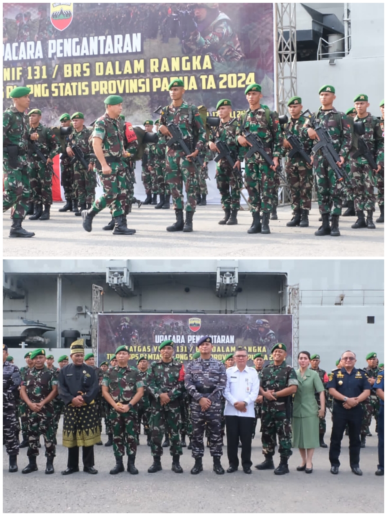 DUMAI (DUMAIPOSNEWS)-Rabu, 17 Juli 2024, bertempat di Dermaga C Pelabuhan Pelindo I Dumai, Jalan Datuk Laksamana, Kelurahan Laksamana, Kecamatan Dumai Kota, Kota Dumai, dilaksanakan upacara pengantaran 450 personil Satgas dari Yonif 131/BRS dalam rangka operasi pengamanan perbatasan RI-PNG Statis di Provinsi Papua Tahun Anggaran 2024.