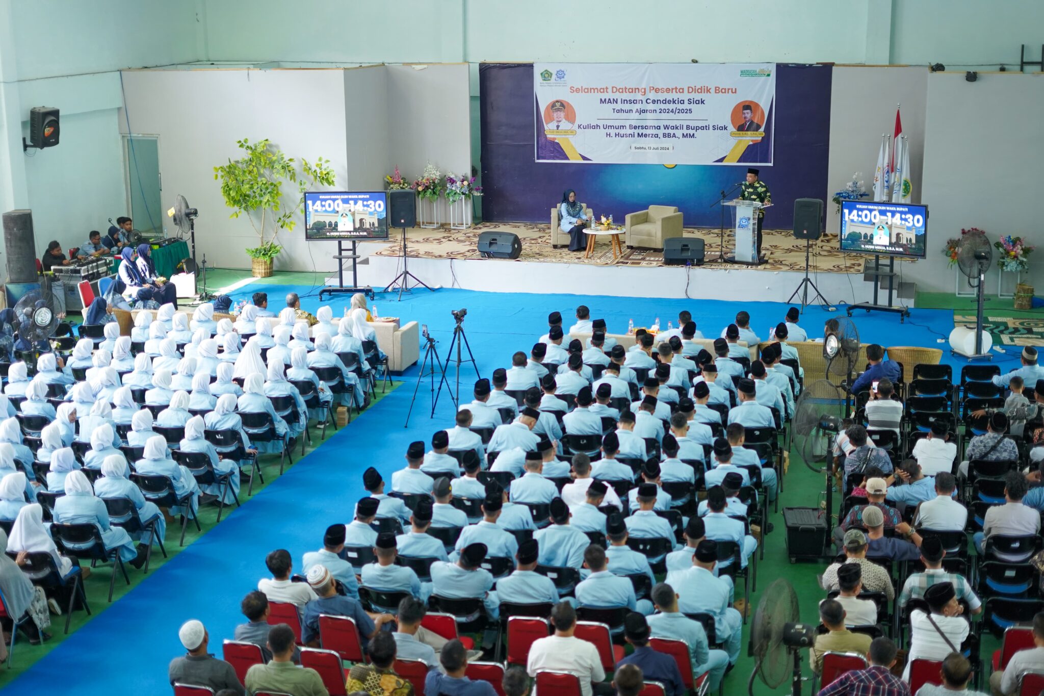 Istimewanya lagi penyambutan peserta didik baru tahun ini disuguhkan materi pembelajaran umum yang diberikan oleh Wakil Bupati Siak, Husni Merza.