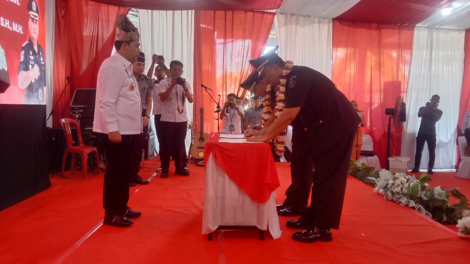 DUMAI(DUMAIPOSNEWS) — Kanwil Menkumham Riau Budi Argap Situngkir menghadiri serah terima jabatan Kepala Rutan kelas II B Dumai dari Bastian Manalu kepada Yudhi Khairudin, Rabu (11/09/2024) di halaman Rutan Jalan Pemasyarakatan Kelurahan Bumi Ayu, Dumai Selatan.