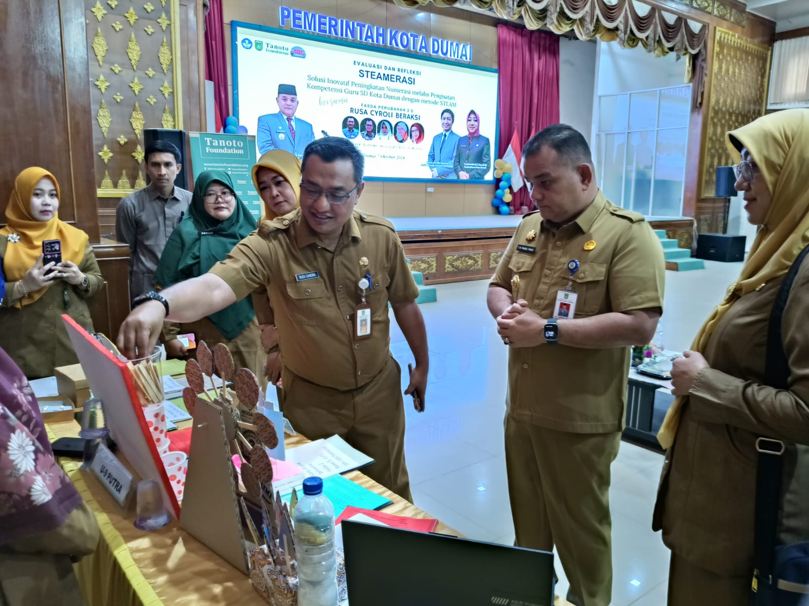 DUMAI(DUMAIPOSNEWS)- Pjs Walikota Dumai. T.R Fahsul Falah SSos Msi , Senin (7/10) membuka Kegiatan evaluasi dan refleksi Steamerasi solusi inovatif peningkatan numerasi melalui penguatan kompetensi guru SD Kota Dumai dengan Metode Steam bersama Fasda Perubahan 2.0 Rusa Cyroli- Beraksi (Bergerak Bersama Numerasi).