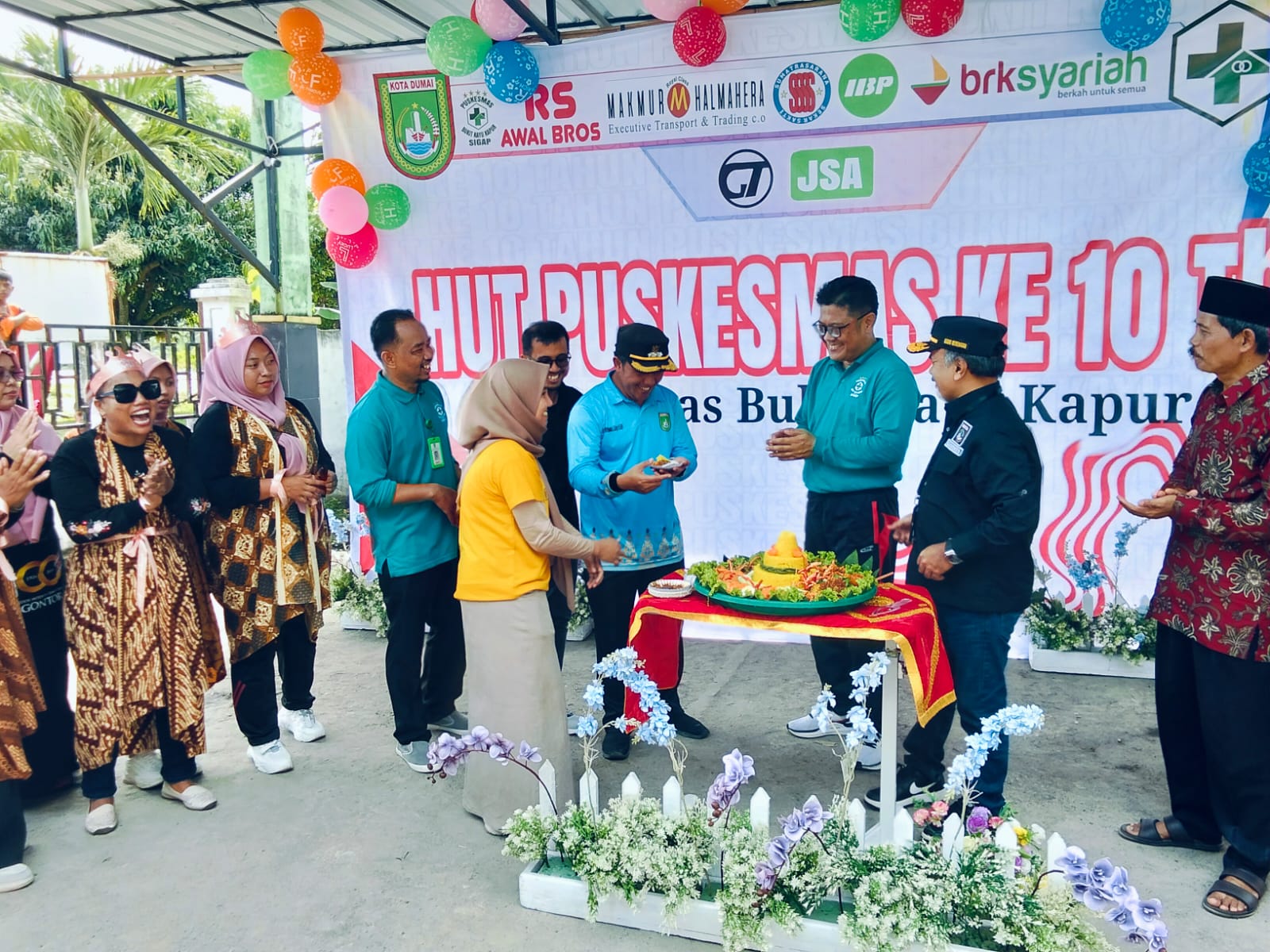 Kegiatan diawali dengan sambutan hangat dari Kepala Puskesmas Bukit Kayu Kapur, Dr. Esra Tampubolon, yang mengucapkan terima kasih atas dukungan dari berbagai pihak sehingga acara dapat berjalan lancar. Ia juga menegaskan bahwa di usia ke-10, Puskesmas Bukit Kayu Kapur akan terus meningkatkan pelayanan kesehatan yang maksimal bagi masyarakat.