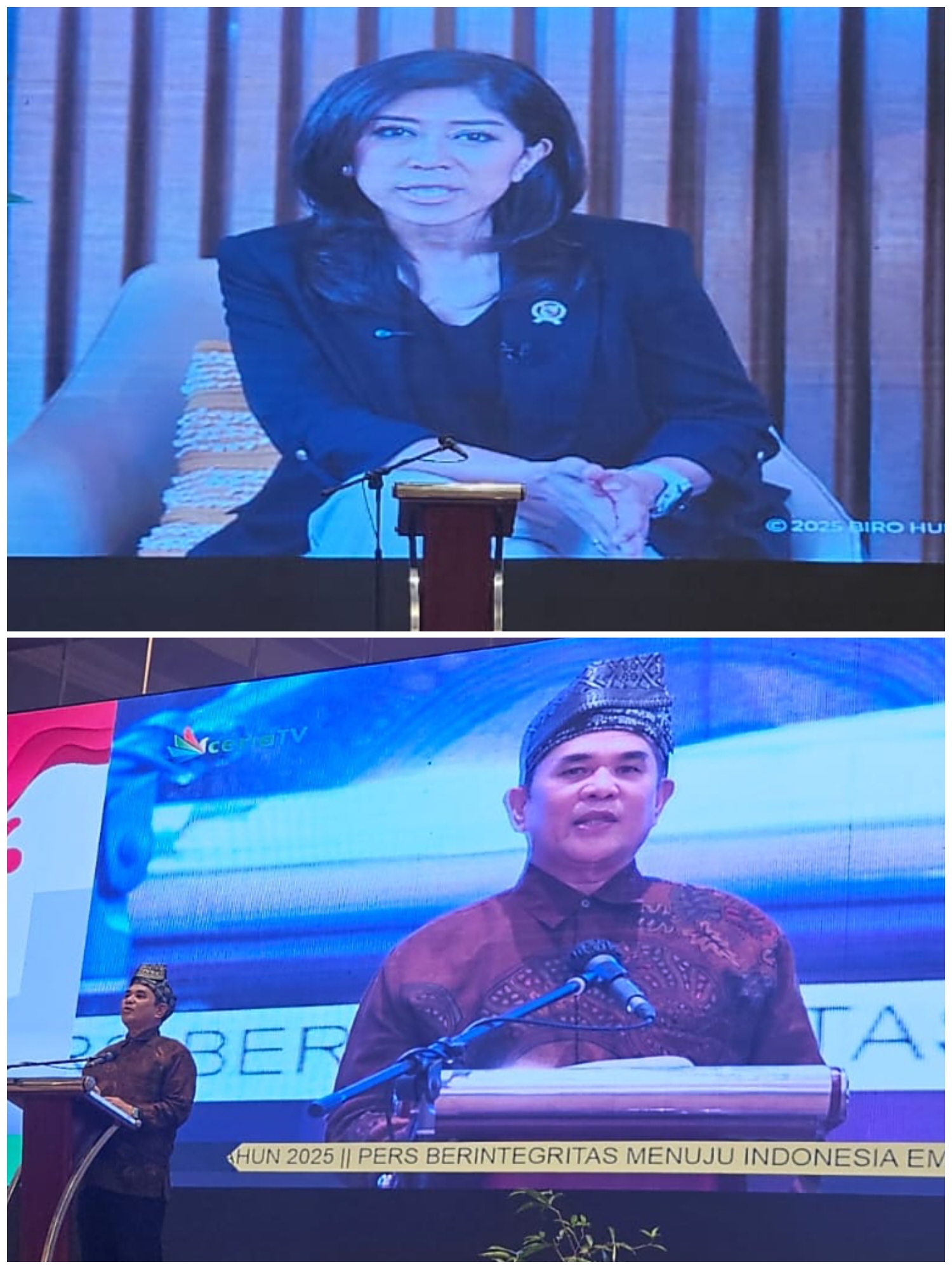 Dalam pidatonya yang disampaikan melalui video, Menteri Komunikasi dan Digital (Menkomdigi) Meutya Hafid menyampaikan bahwa Hari Pers Nasional adalah momen untuk merayakan keberanian, integritas, dan semangat juang insan pers Indonesia. “Pers bukan hanya menjadi saksi sejarah, tetapi juga penggerak perubahan. Di tengah gejolak zaman, pers harus tetap menjadi penjaga demokrasi,” kata Meutya Hafid. Ia juga menyampaikan selamat Hari Pers Nasional 2025 kepada seluruh insan pers di Indonesia.